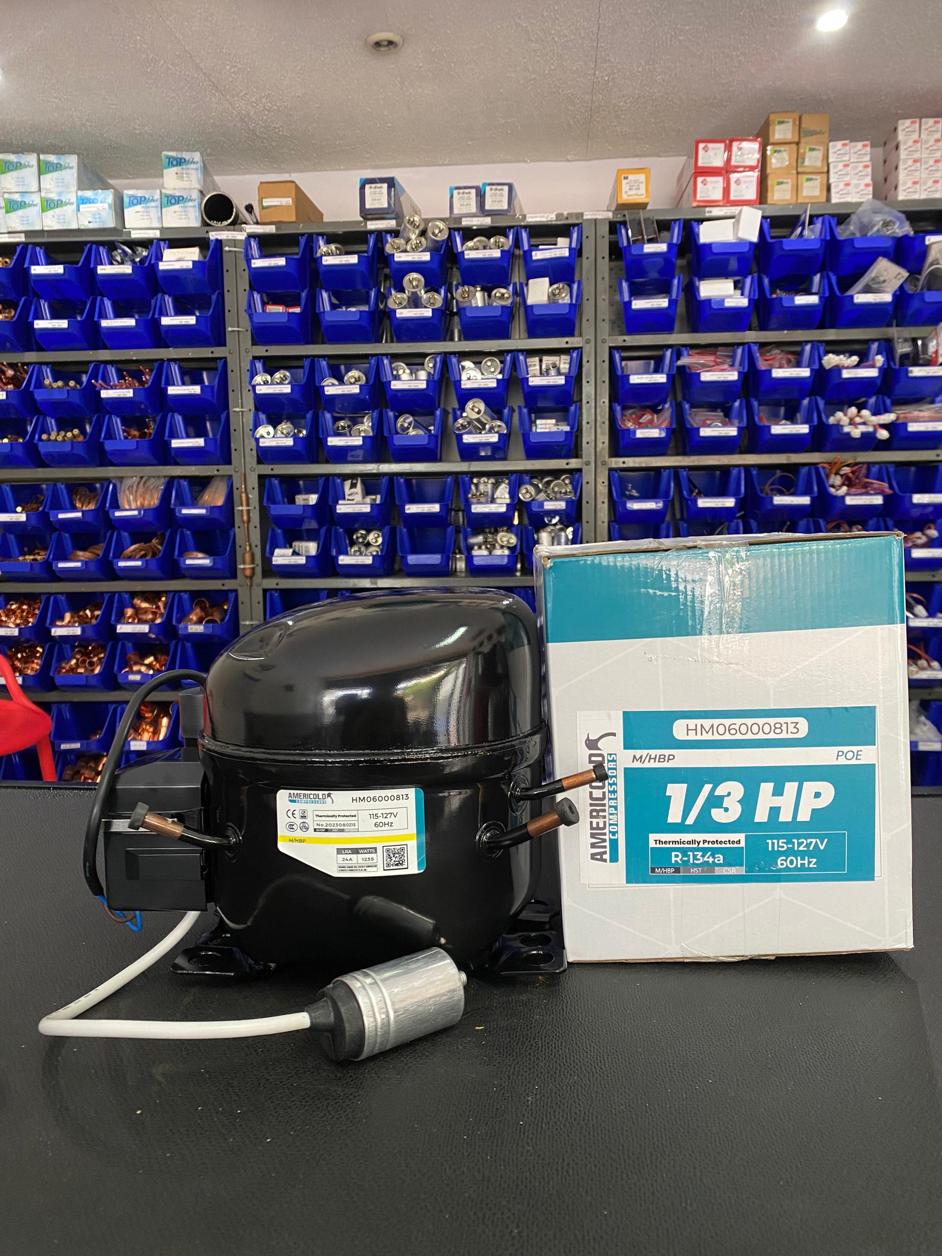 Compresor Americold de 1/3 HP en R134a, perfecto para aplicaciones de refrigeración tanto comerciales como domésticas. Con alta eficiencia energética, operación silenciosa y durabilidad excepcional, este compresor asegura un rendimiento confiable y constante para tus necesidades de refrigeración