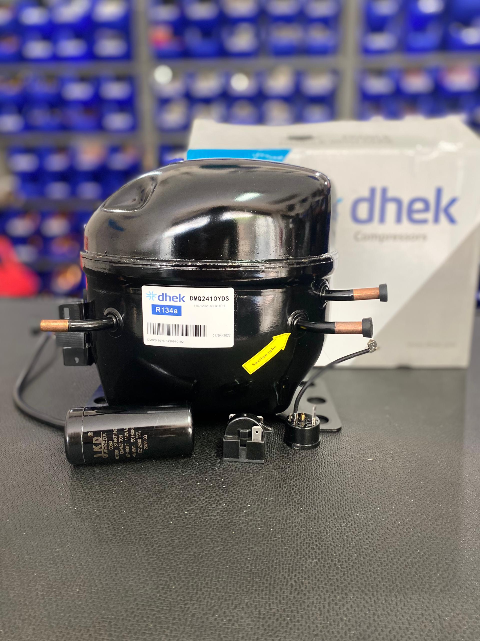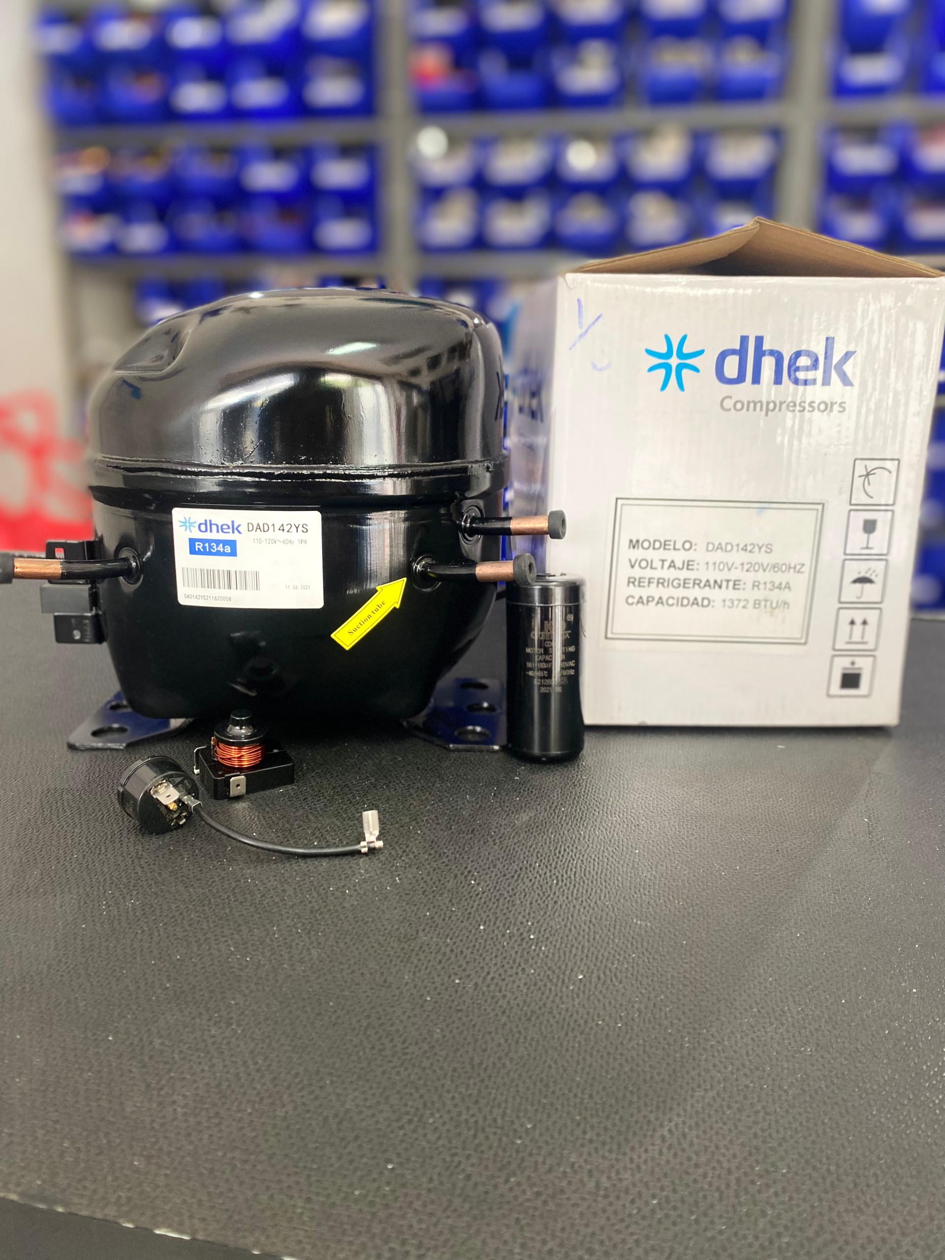 Compresor DHEK de 1/5 HP compatible con refrigerante R134a, ideal para sistemas de refrigeración domésticos y comerciales ligeros. Destaca por su eficiencia energética, funcionamiento silencioso y alta durabilidad, asegurando un rendimiento confiable y constante para tus necesidades de refrigeración.