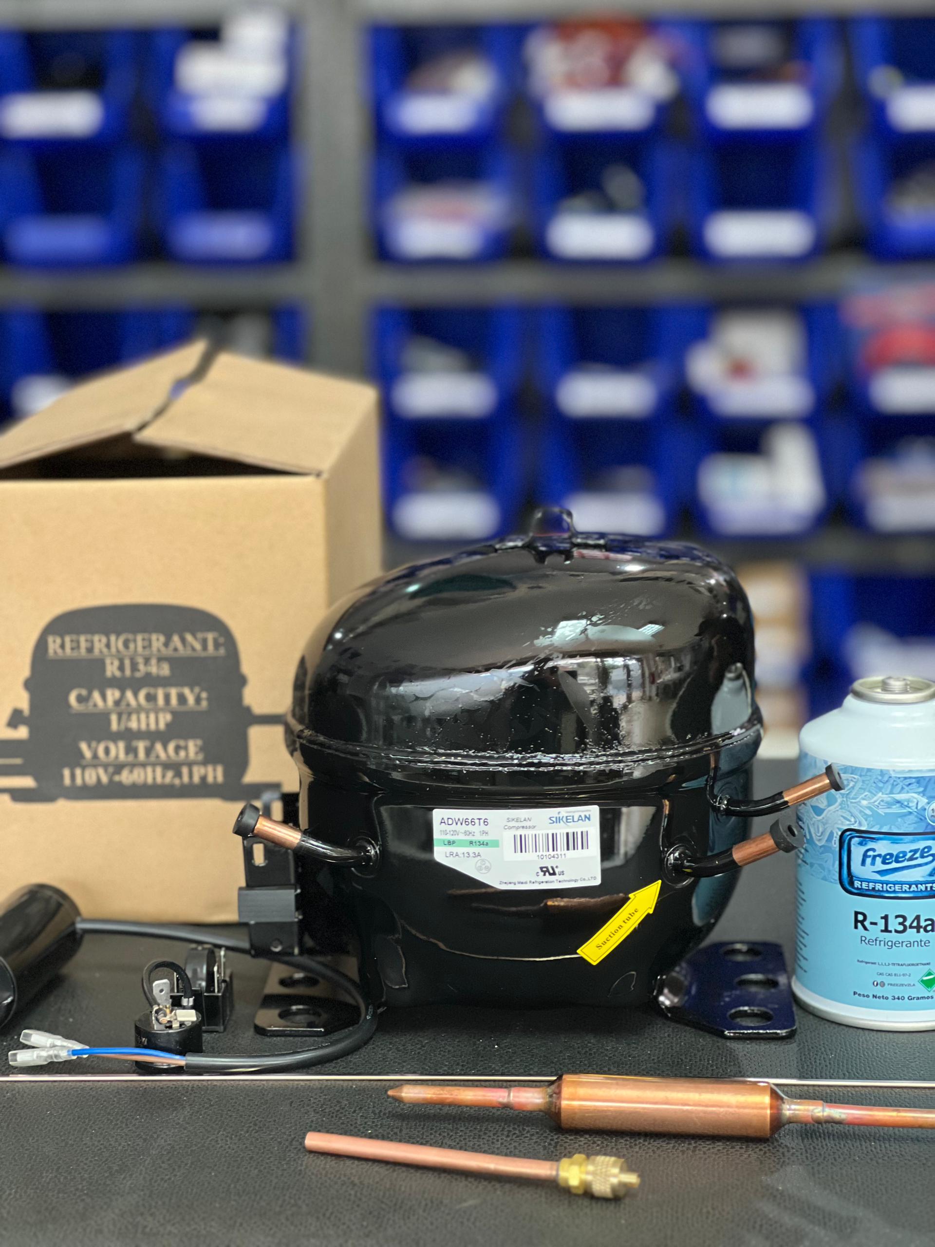 Compresor Sikeland de 1/4 HP para refrigerante R134a, ideal para aplicaciones de refrigeración doméstica y comercial ligera. Destacado por su alta eficiencia energética, funcionamiento silencioso y durabilidad, este compresor garantiza un rendimiento confiable y constante para mantener tus sistemas de refrigeración en óptimas condiciones.